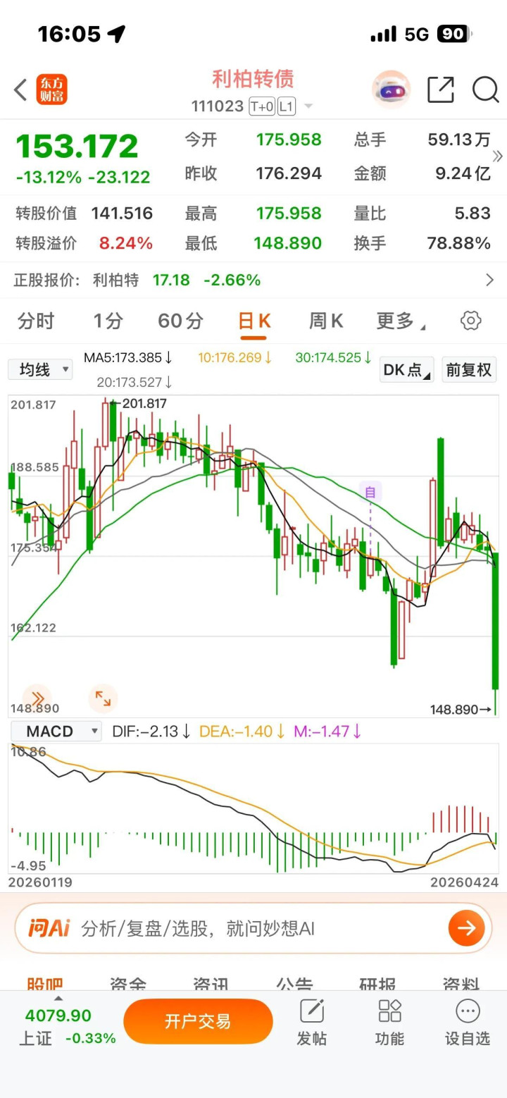 利柏转债,5月6日将开启强赎计数,在正股稳价的前提下,转债猛杀13.12%:可能存在强赎“预杀”,也可能错杀。